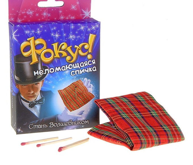 Только настоящий фокусник сможет сделать сломанную спичку снова целой. Фокусник просит зрителей отметить спичку, заворачивает ее в платок, просит зрителя сломать ее. После этого фокусник открывает платок и демонстрирует изумленным зрителям целую спичку. Для эффектного выполнения фокуса важна подготовка - обязательно тренируйтесь до выступления, чтобы выполнить фокус легко и красиво. Позаботьтесь о таинственной атмосфере – полумрак и музыка сделают шоу захватывающим. Не забывайте про заклинания и волшебную палочку! Инструкция по выполнению фокуса: 1.До начала фокуса необходимо спрятать спичку в потайной карман платочка. 2.Достаньте вторую спичку и попросите зрителей пометить ее. Помеченную спичку положите в середину платка и заверните его: сначала сложите сторону платка, которая ближе к вам (в ней должен быть расположен потайной кармашек), потом противоположную сторону, затем правую сторону и левую сторону платка. 3.Помеченная спичка остается за одним слоем платка, ее нужно зажать рукой. Попросите зрителя сломать спичку – он должен сломать спичку, которая находится в потайном кармашке. 4.Произнесите заклинание, разверните платок – и продемонстрируйте изумленным зрителям, что помеченная спичка целая и невредимая.